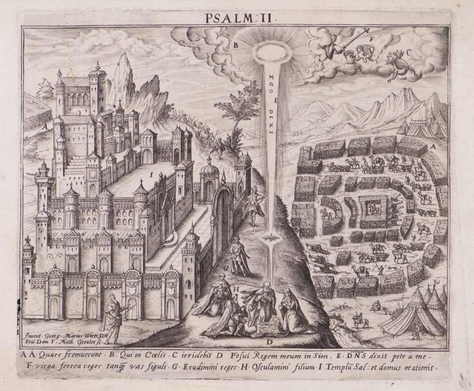 Ilustracja: Psalm II – Pokłon Trzech Króli, odbitka graficzna, XVII w.; szerokość: 170 mm, wysokość: 143 mm; Zbiory MAW 5489